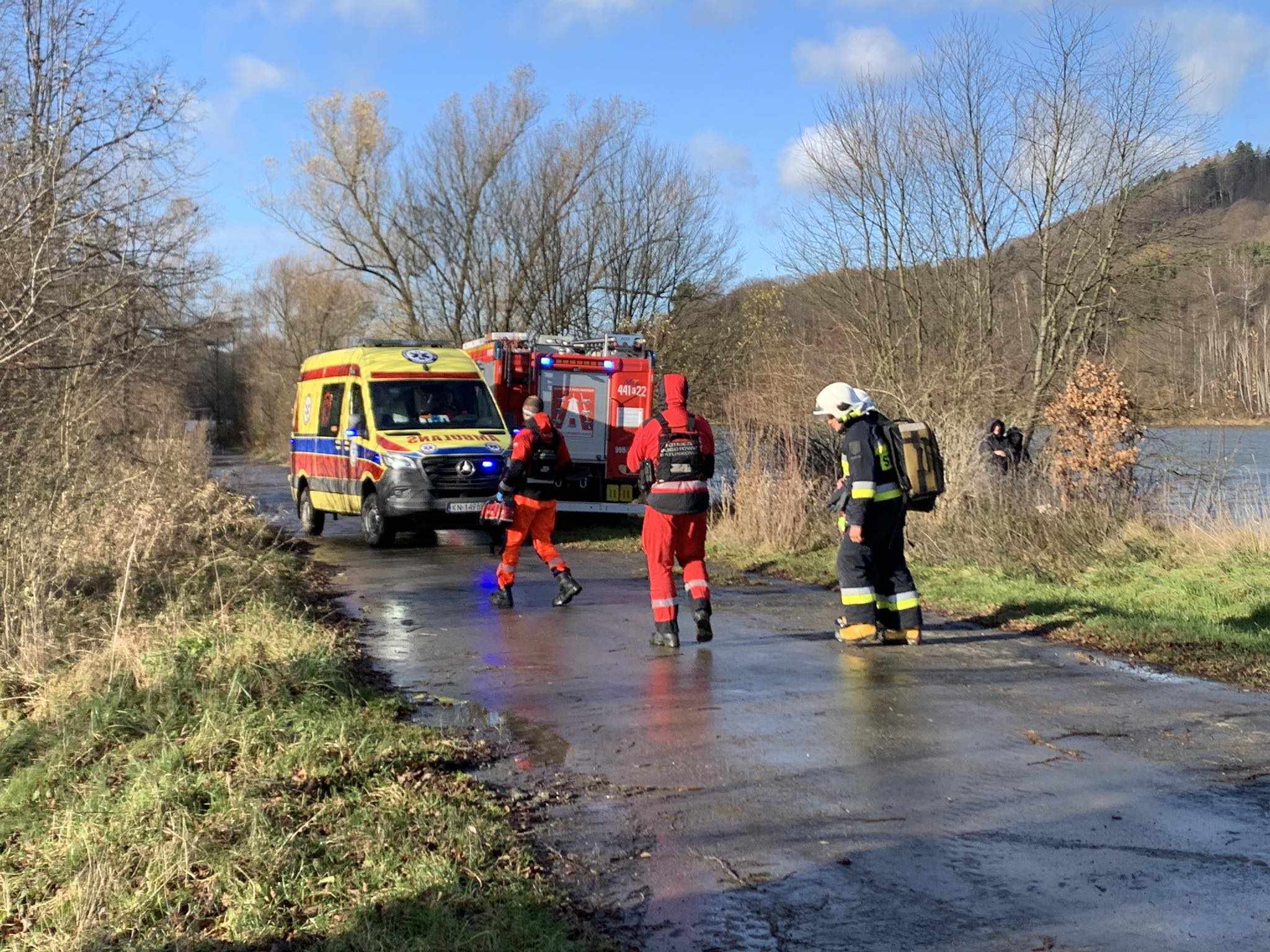W piątkowy poranek o godzinie 10.55 strażacy otrzymali tragiczne zgłoszenie. Pewna osoba zauważyła, że nad Jeziorem Klimkowskim, od strony pola biwakowego doszło do wywrócenia się rowerka wodnego, którym przemieszczał się około 55-letni mężczyzna. Po otrzymaniu zgłoszenia i przybyciu na miejsce ratownicy natychmiast przystąpili do akcji. Z wody wyciągnięto nieprzytomnego mężczyznę, podejmując jednocześnie resuscytację krążeniowo-oddechową. Na miejsce przyleciał śmigłowiec Lotniczego Pogotowia Ratunkowego, aby zabrać poszkodowanego do szpitala.