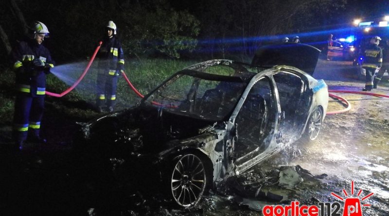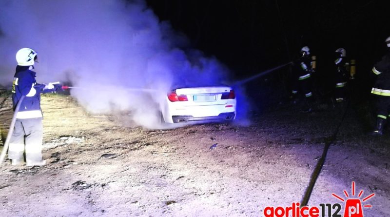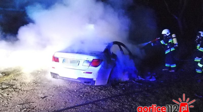 Dzisiaj w nocy strażacy z czterech zastępów podejmowali akcję gaśniczą pożaru luksusowego BMW serii 7 do jakiego doszło na poboczu drogi wojewódzkiej nr 993 w miejscowości Bednarka (na wysokości domku myśliwskiego).
