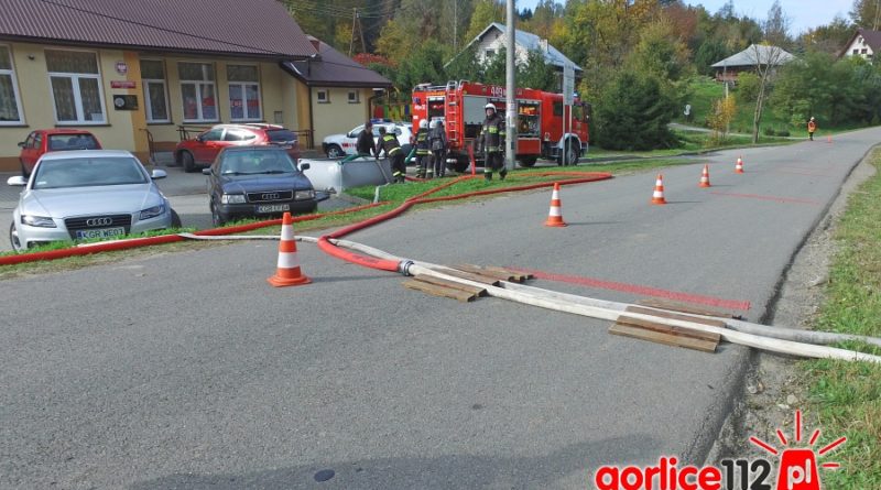 – OSP Szalowa – Podanie dwóch kolejnych prądów wody na budynek Kaplicy, wykonanie zasilania wodnego do samochodu OSP Bieśnik,