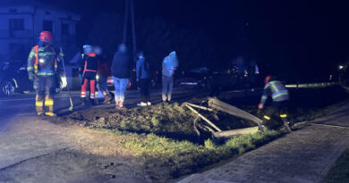 – OSP Bieśnik – Zlokalizowanie głównego wyłącznika energii elektrycznej i odcięcie dopływu prądu.