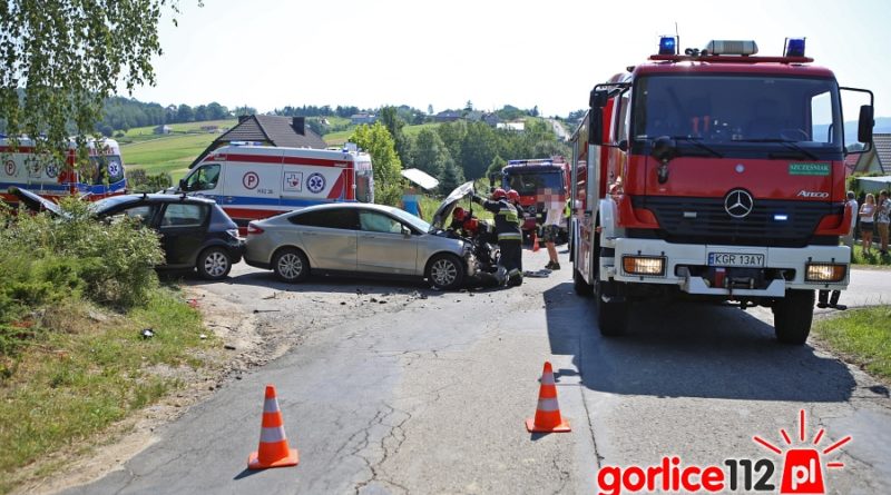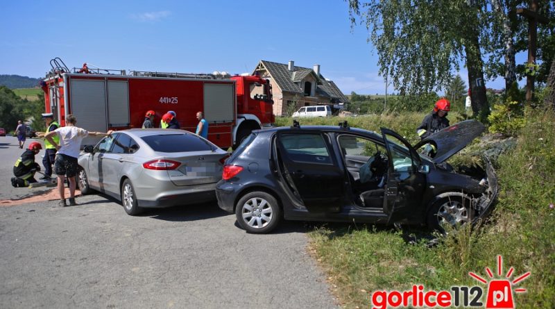 Według relacji świadków kierujący Fordem nie ustąpił pierwszeństwa przejazdu prawidłowo jadącemu od Gorlic w kierunku Woli Łużańskiej Peugeotowi. Fordem podróżował wyłącznie mężczyzna który nie odniósł żadnych obrażeń, natomiast Peugeotem małżeństwo, oboje zostali zabrani przez Zespoły Ratownictwa Medycznego do szpitala w Gorlicach. Na czas prowadzonych działań droga powiatowa w miejscu zdarzenia była zablokowana, po odjeździe karetek ruch odbywał się wahadłowo.