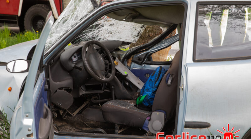 Kierujący seicentem, młody mężczyzna z niewyjaśnionych przyczyn zjechał z drogi po czym uderzył w drzewo. Na szczęście podróżował on sam, ponieważ samochód w części od pasażera jest całkowicie zniszczony. Mężczyzna został zabrany przez ZRM do szpitala.