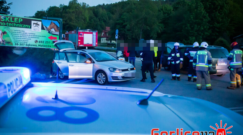 Zdarzenie z udziałem dwóch volkswagenów ma miejsce na skrzyżowaniu drogi wojewódzkiej z powiatową w miejscowości Małastów (gmina Sękowa). Samochodami podróżowało łącznie sześć osób, pięć w golfie oraz jedna w touranie. Do szpitala została zabrana jedna z osób podróżujących golfem, kobieta uskarżała się na ból głowy. Została zabrana przez zespół ratownictwa medycznego do gorlickiego szpitala.