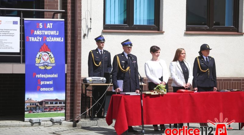 – Najważniejszym zadaniem każdego strażaka, zadaniem z którego w głównej mierze rozlicza nas społeczeństwo, jest ratowanie życia, zdrowia ludzkiego oraz mienia – mówił w swej przemowie do zebranych na placu bryg. Krzysztof Gładysz, komendant powiatowy PSP w Gorlicach. – Nie ma zwolnienia z tego obowiązku, dlatego każdy z nas z chwilą wstąpienia do tej służby musi się liczyć z tym, że zostanie wezwany w dowolnym czasie do wykonywania niełatwych zadań. To co większość społeczeństwa ogląda poprzez bezpieczną barierę szklanego ekranu jest dniem powszednim strażaków. Dziś w dniu naszego święta, przypadającego w roku 25-lecia funkcjonowania Państwowej Straży Pożarnej stajemy z dumą, świadomi dobrze spełnionego obowiązku. Podnosimy głowę z przekonaniem, że zrobiliśmy wszystko co można było zrobić i nie zawahaliśmy się gdy trzeba było podjąć ryzykowną walkę o ludzkie życie. Nigdy nie odwróciliśmy się od potrzebującego ratunku człowieka, choć wielokrotnie stawaliśmy bezradni w sytuacji kiedy na ratunek było już za późno. Dlatego ważne jest by każdy mieszkaniec naszego powiatu był w jakimś sensie strażakiem, uważnie obserwując otaczającą nas rzeczywistość dostrzegał zagrożenia, o których maksymalnie szybko mógłby nas poinformować. Taka postawa zwiększa szansę na ograniczenie skutków a czasem nawet można zapobiec nieszczęściu. W naszym wspólnym interesie jest powszechna troska o bezpieczeństwo. Patrząc z perspektywy dzisiejszego święta, z wielką satysfakcją mogę stwierdzić fakt, że podejmowane przez strażaków działania, charakteryzujące się z roku na rok coraz większym stopniem trudności, są pozytywnie postrzegane przez mieszkańców. Mimo iż wzrasta katalog zdarzeń, do których jest wzywana straż pożarna a wraz z tym zwiększa się zakres obowiązków podejmowanych przez strażaków, nie słabnie społeczne zaufanie do naszej formacji.