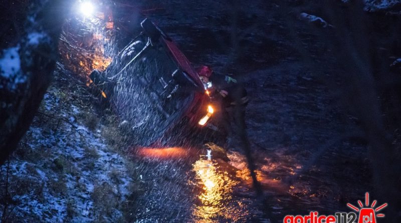 Pomocy jako pierwszy udzielał przypadkowy kierowca, który wydobył z auta podróżujące nim trzy osoby. Przybyli na miejsce strażacy, pomogli ewakuować poszkodowane osoby w bezpieczne miejsce, a następnie do Zespołów Ratownictwa Medycznego. Poszkodowani byli w stanie przytomnym, zziębnięci i przemoczeni. Wszyscy trafili do gorlickiego szpitala. Pojazdem podróżowało starsze małżeństwo oraz 18-latek.