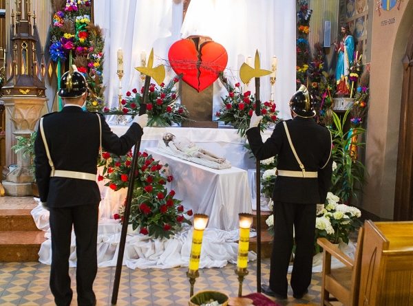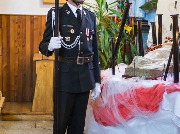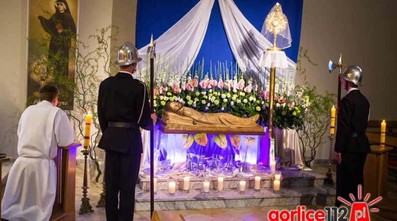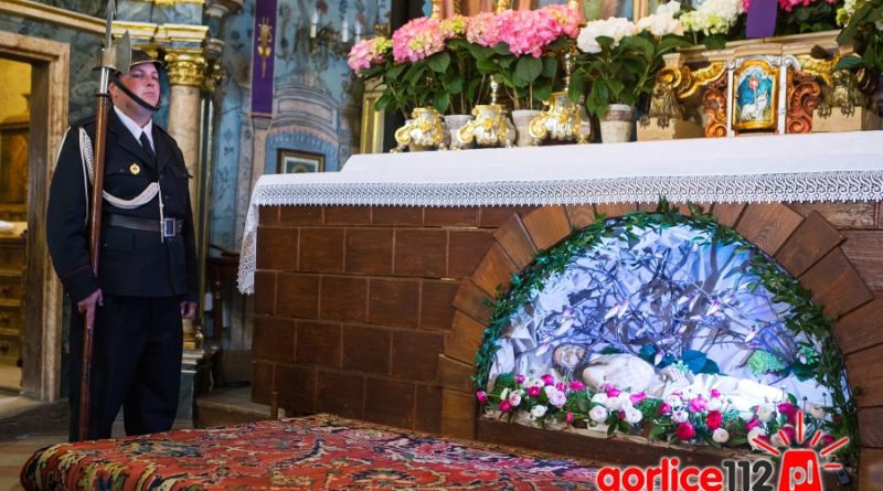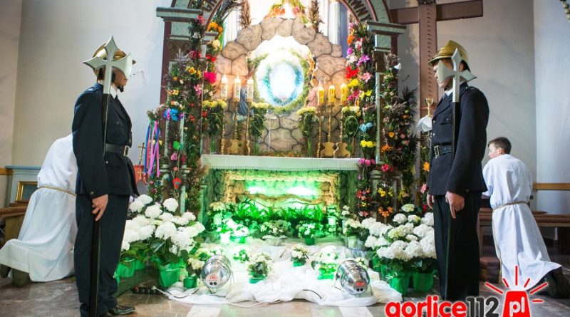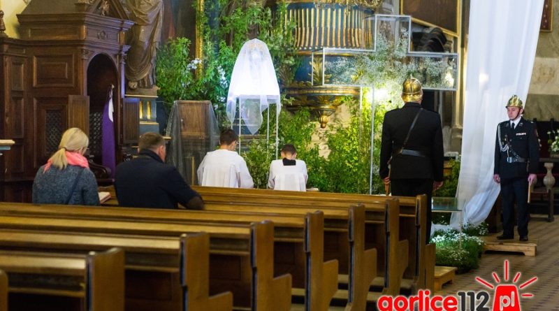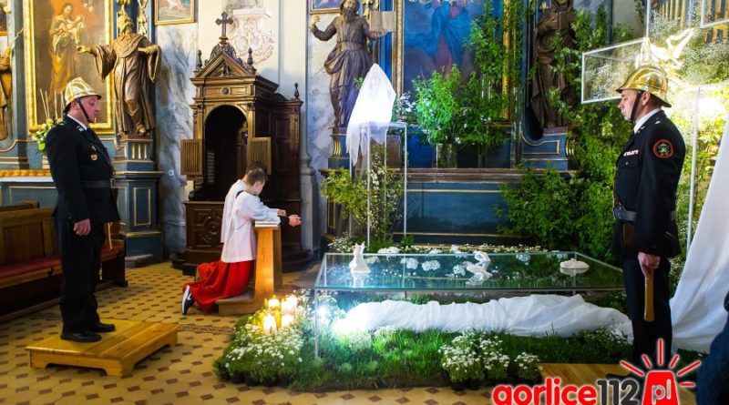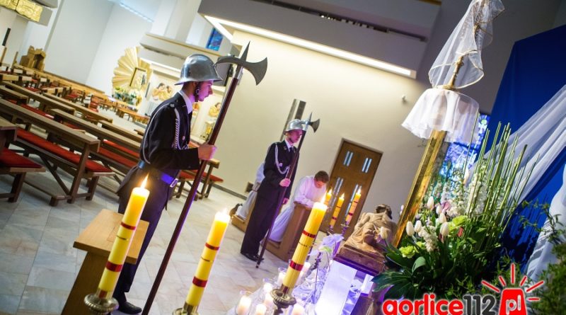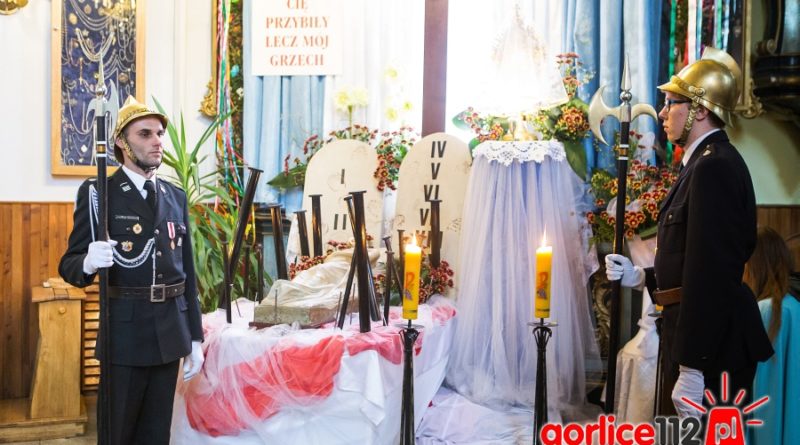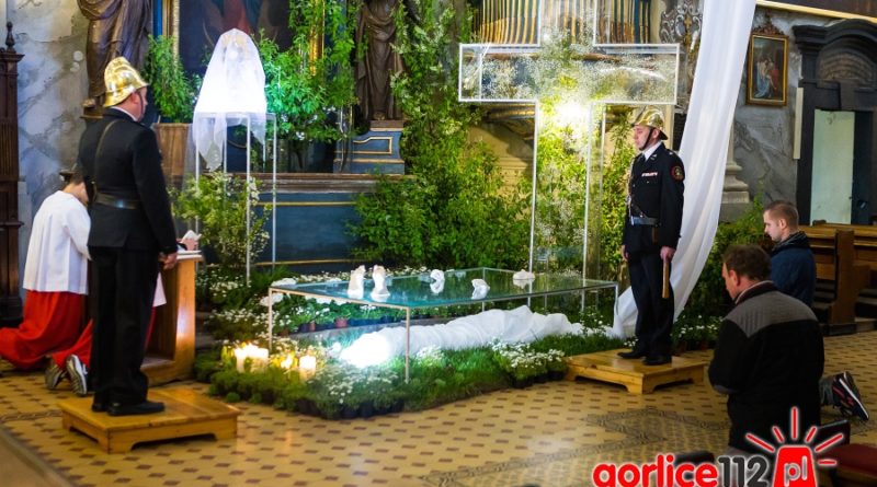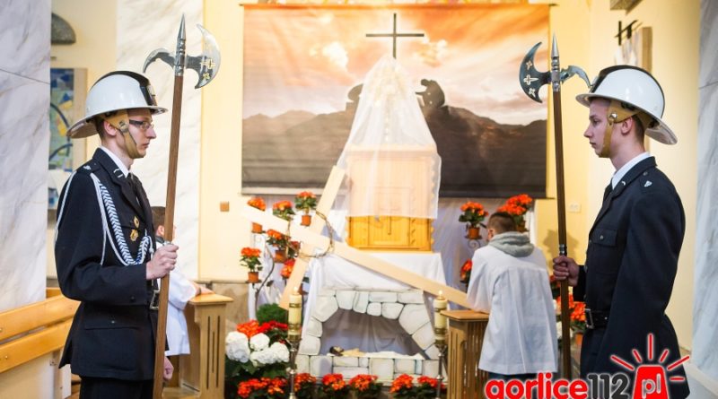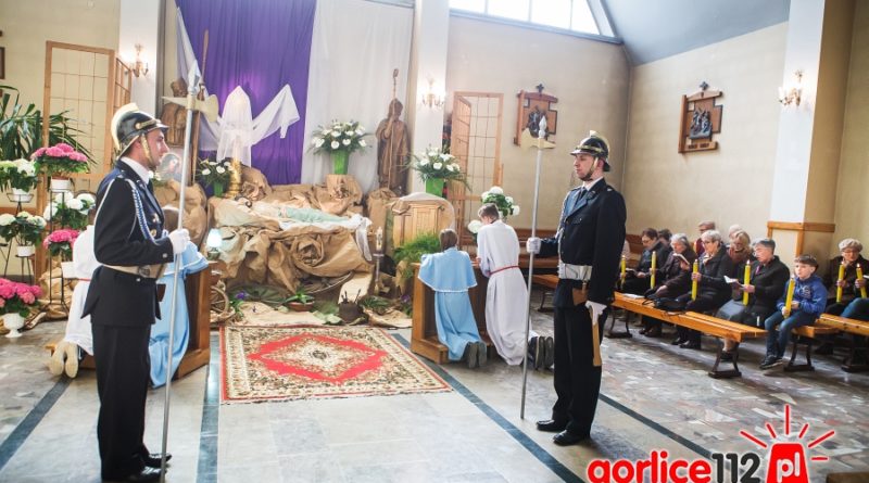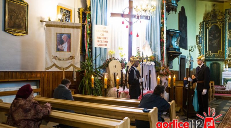Nim jednak zaprezentujemy nasz wyjątkowy reportaż z aż jedenastu miejscowości powiatu gorlickiego, gdzie strażacy pełnią wartę, warto przybliżyć genezę tego obrzędu. Tradycję tworzenia Grobu Pańskiego i trzymania przy nim warty zapoczątkował Zakon Kanoników Regularnych Stróżów Świętego Grobu Jerozolimskiego zwanego Bożogrobcami w XII wieku. Zwyczaj ten przywędrował do Polski bezpośrednio z Palestyny. Przez wieki wartę od Wielkiego Piątku aż do rezurekcji pełniło wojsko, dworzanie a także przedstawiciele bogatego mieszczaństwa. W drugiej połowie XIX wieku, gdy zaczęły powstawać jednostki OSP, tradycję warty przy Grobie Pańskim zaczęli przejmować druhowie. Dzisiaj w większości kościołów w Polsce to właśnie strażacy pilnują złożonego w grobie ciała Chrystusa, chociaż zdarzają się wyjątki – w Strzelcach Wielkich (pow. tarnowski) wartę podejmują kosynierzy.