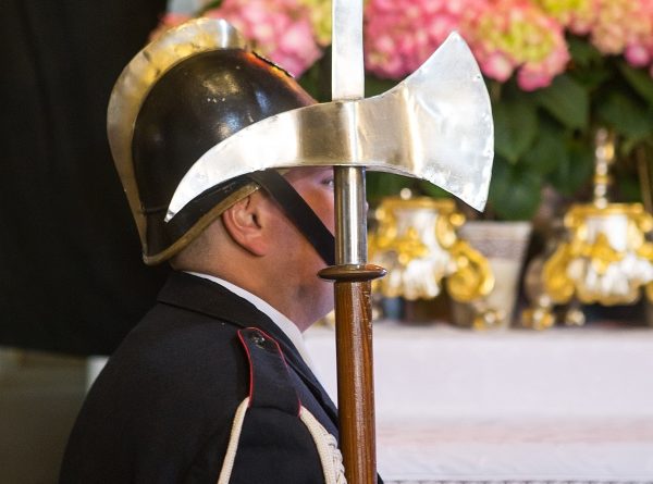 W przypadku strażaków, zaciągnięci do służby druhowie występują najczęściej w mundurach galowych, ze sznurami, w czapkach rogatywkach, hełmach bojowych lub zabytkowych ozdobnych, do tego buty typu skuter. Ochotnicy pełnią warty w parach, a w swych rękach trzymają halabardy lub toporki. Co pewien czas (15-30min) następuje uroczysta zmiana warty.