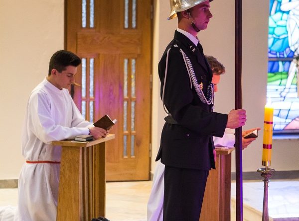 Posługa strażaków podczas świąt Wielkanocnych nie ogranicza się jedynie do pełnienia warty. Druhowie pomagają swoim duszpasterzom podczas obrzędów Triduum Paschalnego, m.in. organizują miejsce do poświęcenia ognia, niosą baldachim, prowadzą adorację jak również dbają o bezpieczeństwo wiernych podczas plenerowych dróg krzyżowych czy procesji rezurekcyjnych.